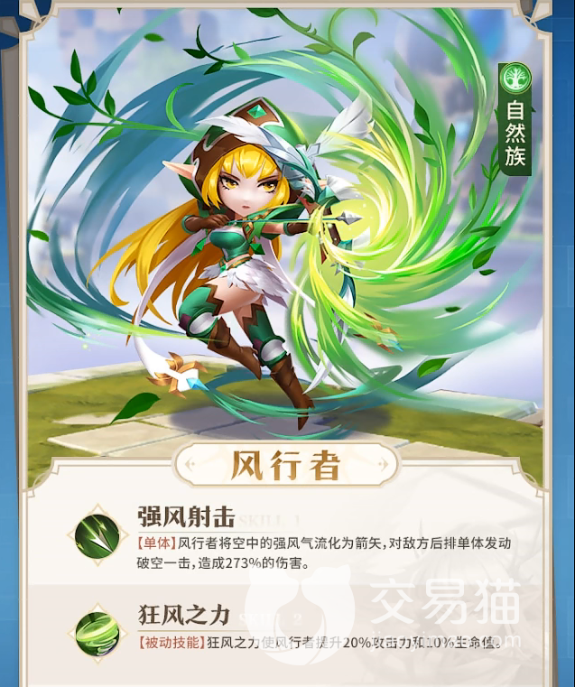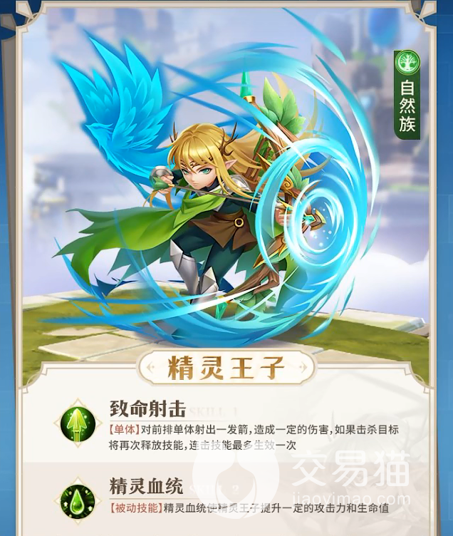 然后是自然族的风行者和精灵王子了,风行者是一个单体输出职业,既然是单体那么伤害自然是非常高的,主要是对地方后排进行攻击,并且她的技能还可以给自己提升伤害和生命值。