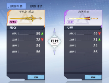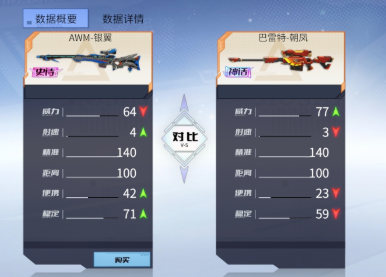 想要使用该系统的话,需要玩家进入到仓库,选中一款武器,点击选中之后在右边能够看到武器的具体信息,左边有一个对比的选项,玩家需要点击左边的对比选项,点击之后再选择需要对比的武器,点击对比就能够看到两款武器的数据差别了。
