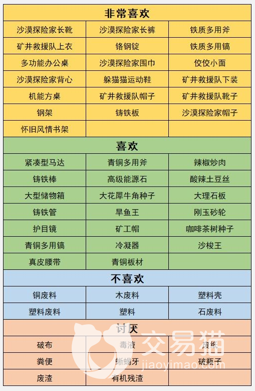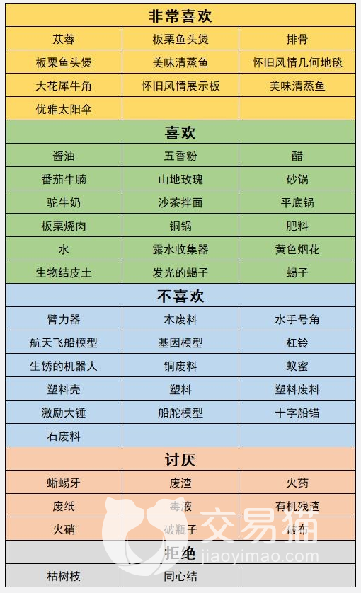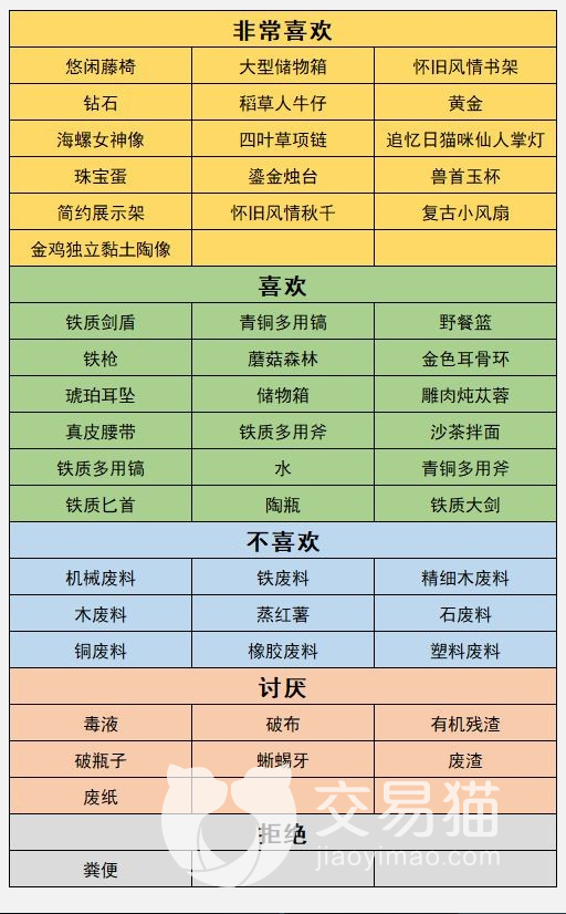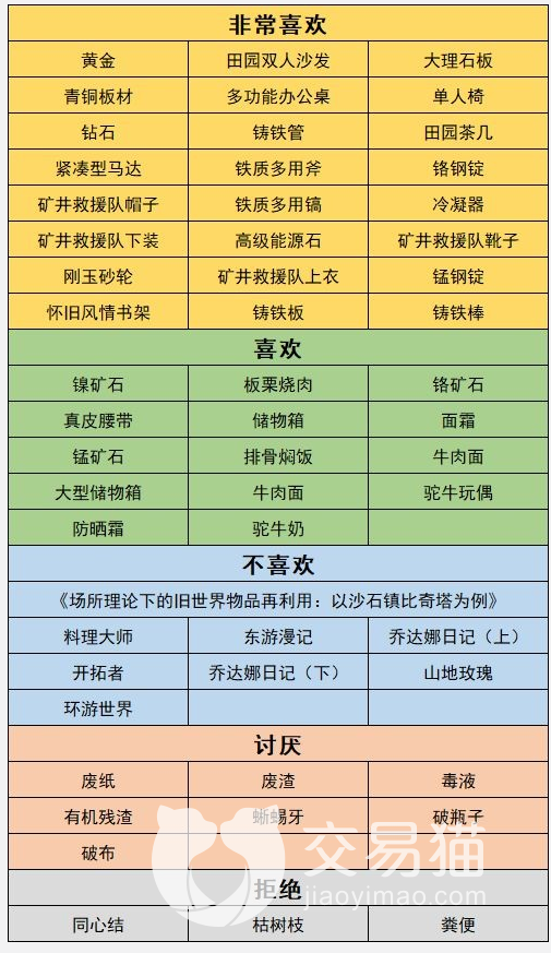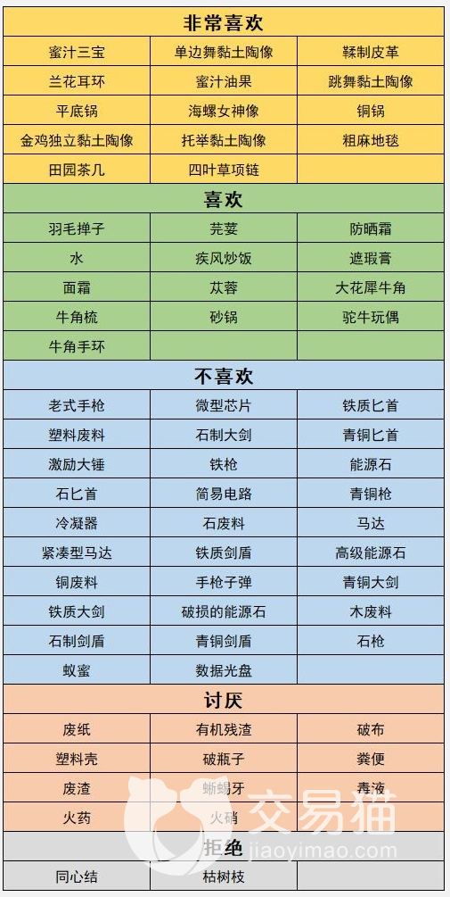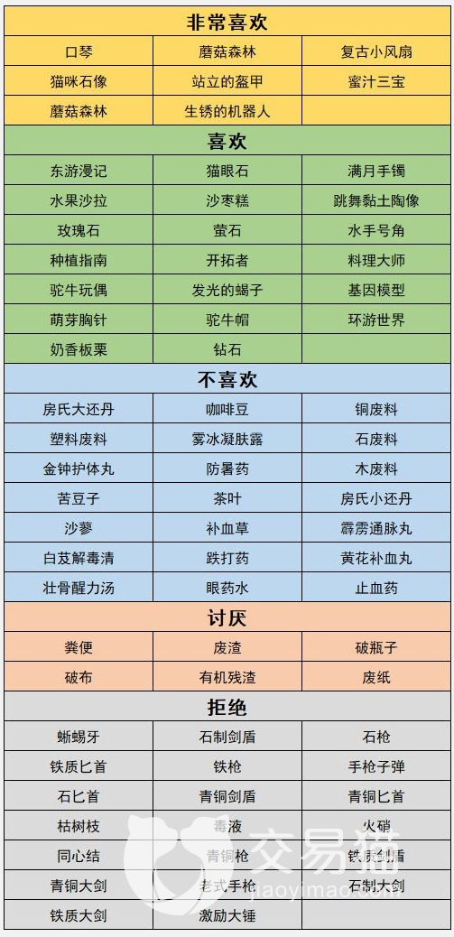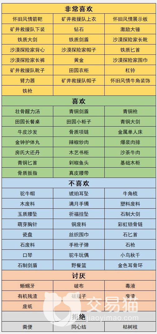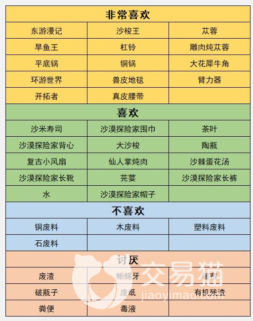 好了,以上的这些人物就是小编这次给大家整理的所有内容了,由于游戏中的人物太多了,没有办法一次说完,所以剩下的角色下期内容会继续分享的。如果还想了解更多NPC喜好的话,记得关注小编,我们下期见~