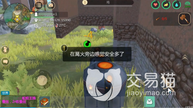 作为一款生存类游戏,第一要务就是保证自己的生存,这款游戏除了生命值的设定以外,还加入了体温的设定以及饥饿值的设定,需要注意的事情有很多,不过这类游戏还是有一个共同的点的,就是要致富先撸树。