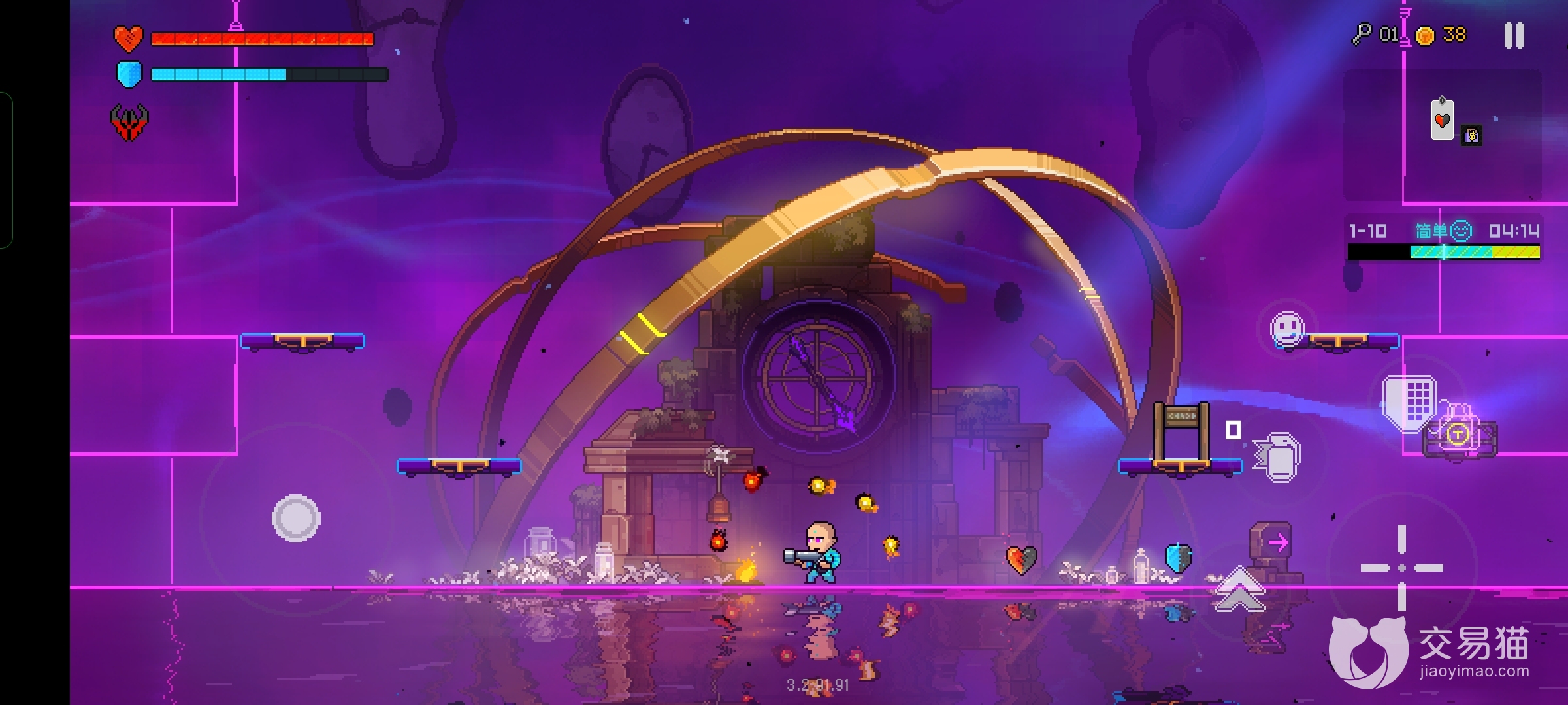 除了祝福的内容这个模式是和游戏时间息息相关的,玩家进入游戏回来到类似时钟塔的紫色地段,这里玩家需要点击传送门前往下一层,游戏也是有着地图的在右上角,可以看到下一个房间,和其他模式最为明显的差异是处在地图下方的时间槽,在刚进入的时候就会开始计时,只要保持在进度条的蓝色端时间内会显示难度为简单,随着时间流逝难度会越来越高,所以很多时候玩家想要闯过更高的层数不能在一个关卡多做停留,有时候捡完道具金币不捡也要快速离开前往下一关这样才能保证怪不会变得太厉害。