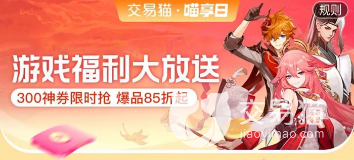 说了这么多账号的类型,那么价格到底怎么样呢?这一点不用担心,平台会不定时举行一些优惠的活动可以参加,其中最具代表性的就是喵享日了。在这个活动中,玩家能够领取到无门槛的优惠券,直接在下单的时候进行抵扣使用。