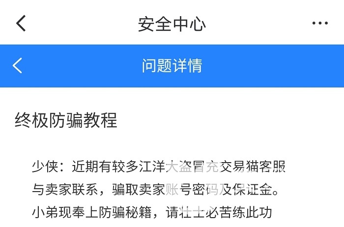 其实安全不止于此,除了平台本身的举措之外,提高自己的安全防范意识和技能也是十分重要的。在这款平台中就带有十分详尽的安全学堂,也为我们整理了一些在交易过程中容易踩到的雷区。在安全中心内就能够找到大量这样的内容供我们进行学习,对于一些新手小伙伴们来说也是一个利好消息。更别说安全中心里还带有客服验证、举报投诉等实用的功能了。