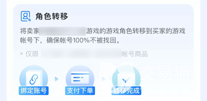 首先我们来说说这个安心购,其实就是一系列安全保障机制的结合体。比如说安心购中的转移服务,根据游戏特性的不同,支持的服务也是截然不同的。一般来说都是支持账号转移的,其意思就是把一个账号内的所有内容直接转移到另一个账号中,通过这种方法,能够有效避免购买到的账号被找回的风险,一旦转移完成,就算账号被找回,对于我们来说也是没有任何影响的。