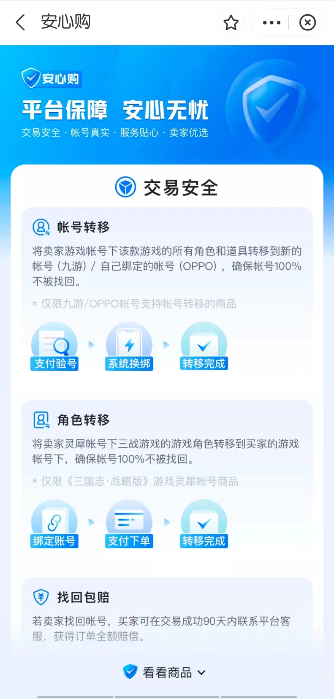 交易猫的所有用户都是经过实名认证的,可以说经过交易猫认证的卖家都是优质卖家,另外交易猫还会对所有商品进行验号,保证每个买到的游戏账号都是真实的。在交易完成后,交易猫还有一系列的售后保障来保证玩家的利益,所以玩家绝对可以放心的在平台进行交易。