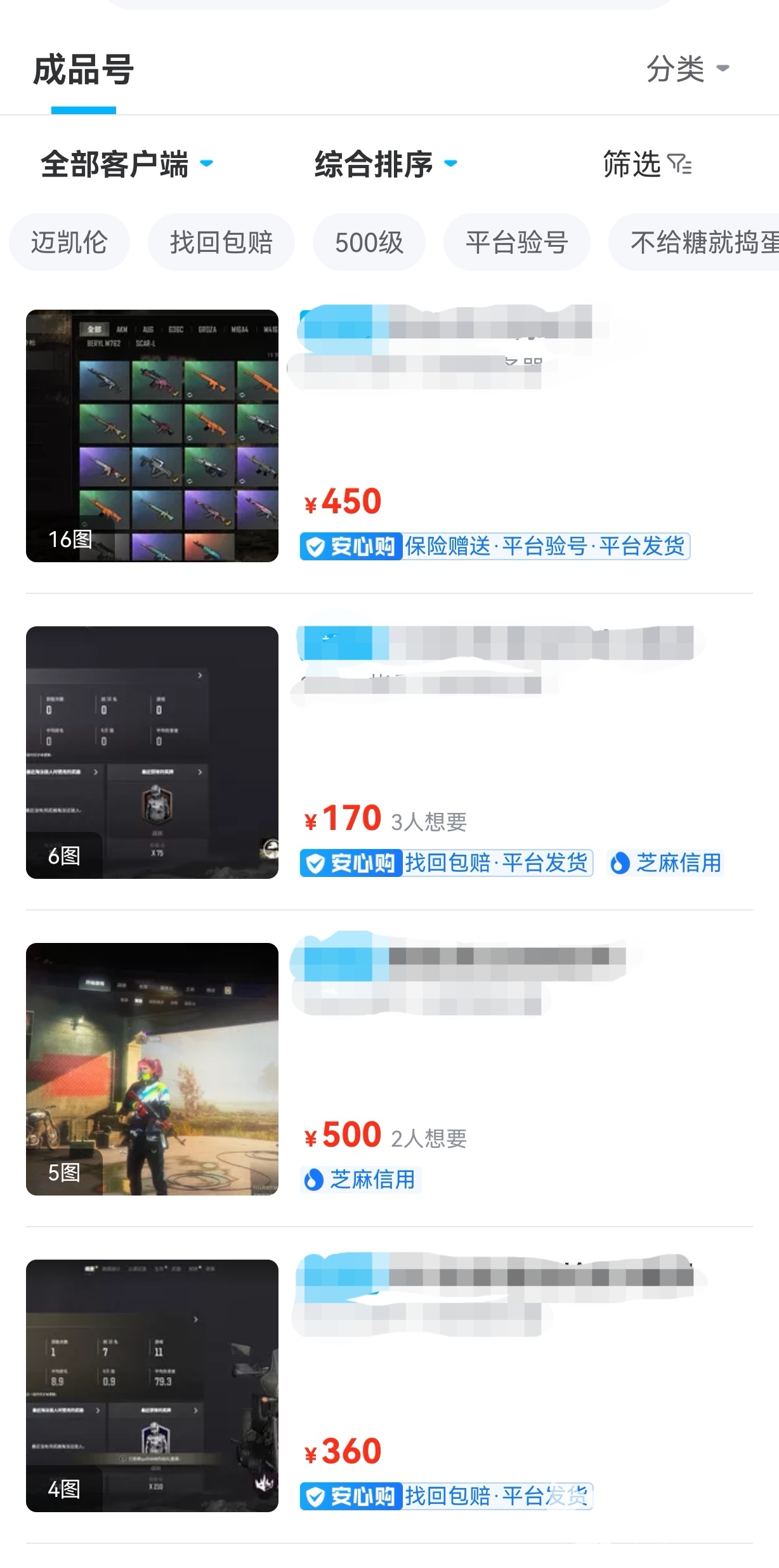 买家在下载好APP之后就可以在搜索框中迅速找到需要的游戏,绝地求生的各类账号都会陈列出来,可以根据自己的预算来筛选价格范围,因为这类账号的售价浮动很大,游戏内枪械的皮肤、角色套装、载具皮肤、舞蹈动作等都是比较值钱的,还有角色等级。因为这类确实很多大家选择自己感兴趣的方面的关键词浏览会比较迅速的找到目标账号。