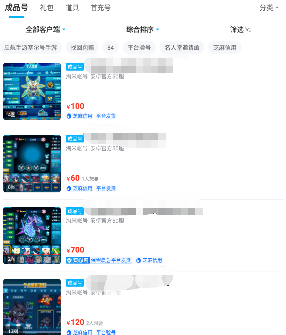 一、多种类高级账号任君选择。赛尔号手游里任务很多是重复的,大量需要消耗时间获得的道具与角色占据玩家游戏时间。交易猫上选购成品账号,可以筛选通过主线任务、多个高稀有度精灵、高质量练度的账号,跳过缓慢发育阶段,更好享受游戏世界。