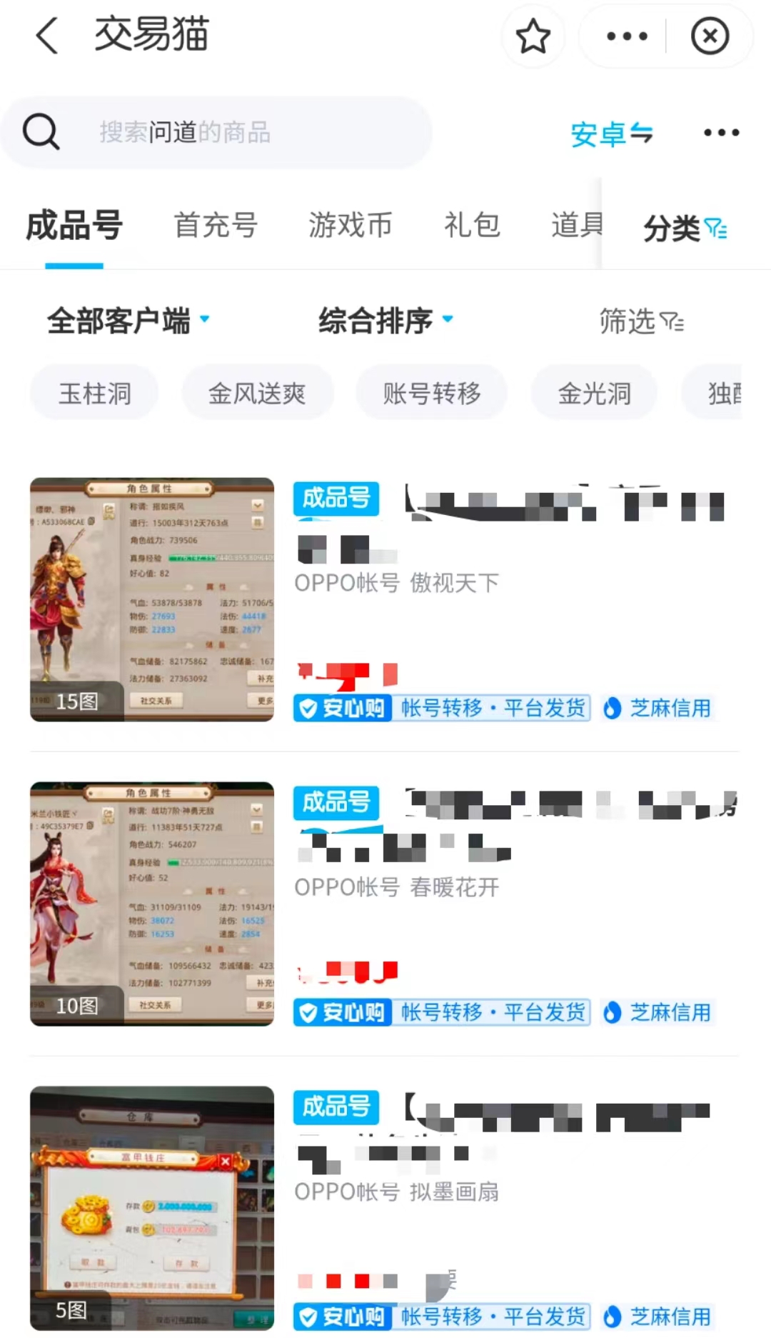 以上就是小编收集到问道端游在哪里买号价格最低的全部信息,想要买到优质的问道账号,交易猫是你最好的选择,安全又靠谱的账号交易平台实至名归。