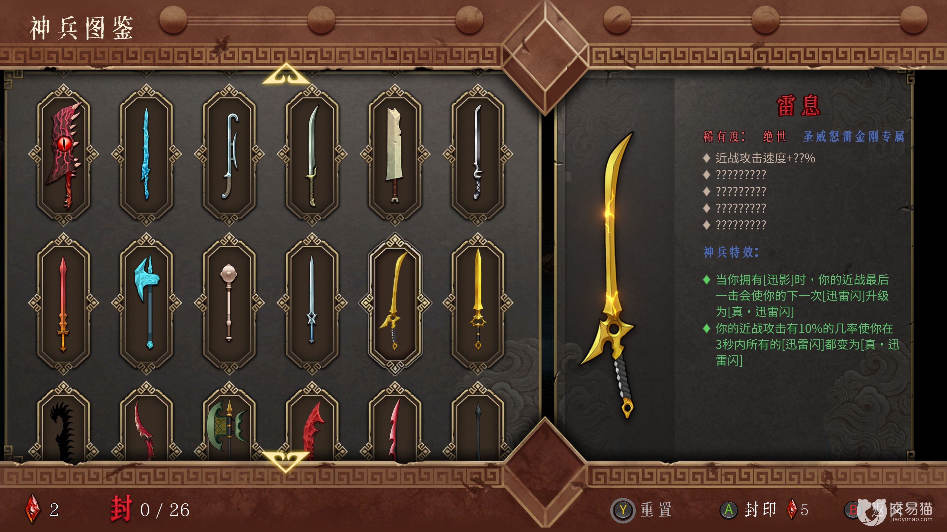 最为主要的武器类型主要的就是附属玩家选择的职业,会在右上角有专门的职业专属标注很容易区分,典型的【雷息】是金色外形的弯刀将【迅雷闪】变【真。迅雷闪】一字之差伤害差之千里,再将词条刷到雷电伤害加成那么雷电玩法的玩家将会直接起飞。不过职业武器一般一把对应一个石像的一个玩法也就是有十四把,同一石像会有两把专武很容易搞混,千万注意自己的流派对应的是什么武器,例如【雷呼】对应的是迅雷玩法,【万钧】对应的是蛮雷玩法差别可以说是异常的巨大的。