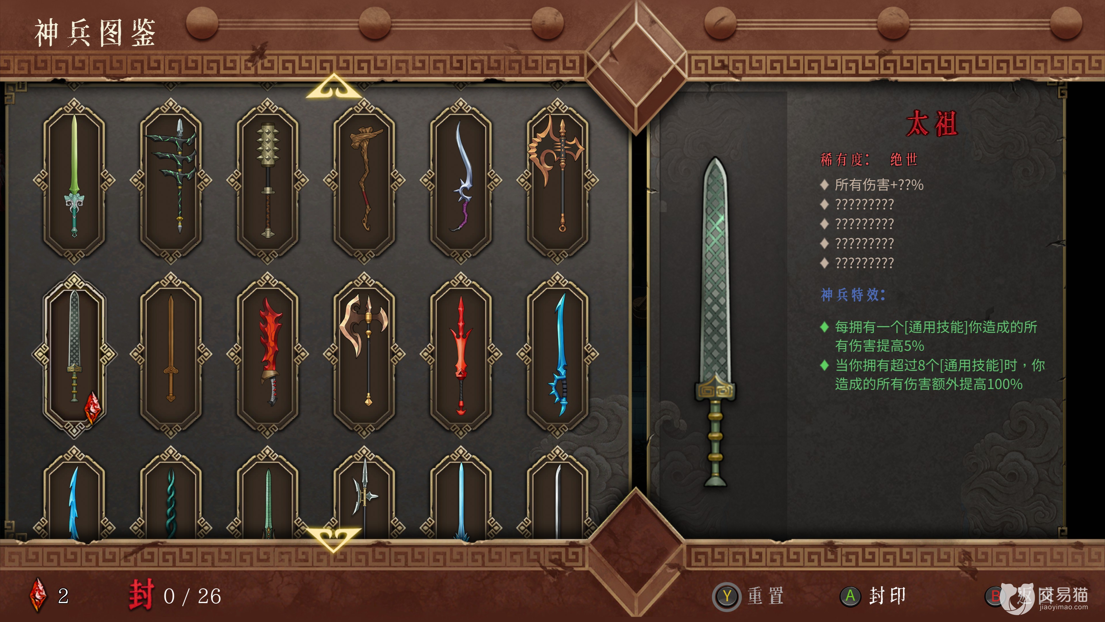 最后除了以上三个分类的武器,所有的游戏当中总会有一个唯一真神类型的武器,这把武器在游戏当中外形很像是青铜剑典雅大气,名字如此的霸气效果也是和名字一样是百兵之祖,游戏当中武器基本上是和上面一样有着自己的搭配的,不然不对号的话基本上不有有任何的属性加成,这把武器完全的打破规则,无论什么游戏玩法,都会一视同仁给提供强大的伤害加成,当然有时候还有根据玩法去铁匠那里刷一些词条变得更加完美,如果你有选择困难症这把剑将会解决你的一切烦恼。