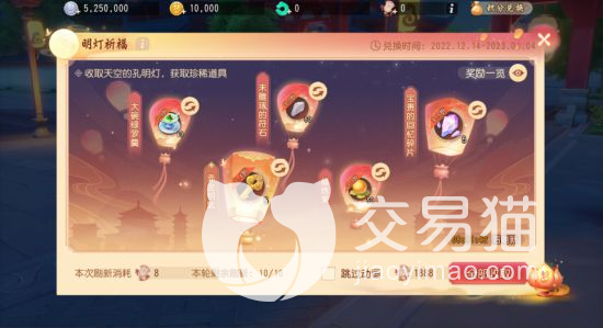 刚好也是年关将至的时期,各位在这里一起放一盏明灯用做为明年祈愿吧,在这个祈福的活动中,玩家可以使用指定的道具刷新里面的灯笼,这里的刷新次数和里面物品的质量是呈正相关比例的。运气好的话会有超级奖励可以获取。