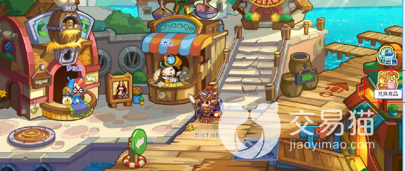2、来到跳跳集市之后,找到右边的“兑换商品”图标。如上图所示。也可以直接点击“罗伦斯”这个人物,和他进行交换物品即可,和前面相比,两者是没差别的。