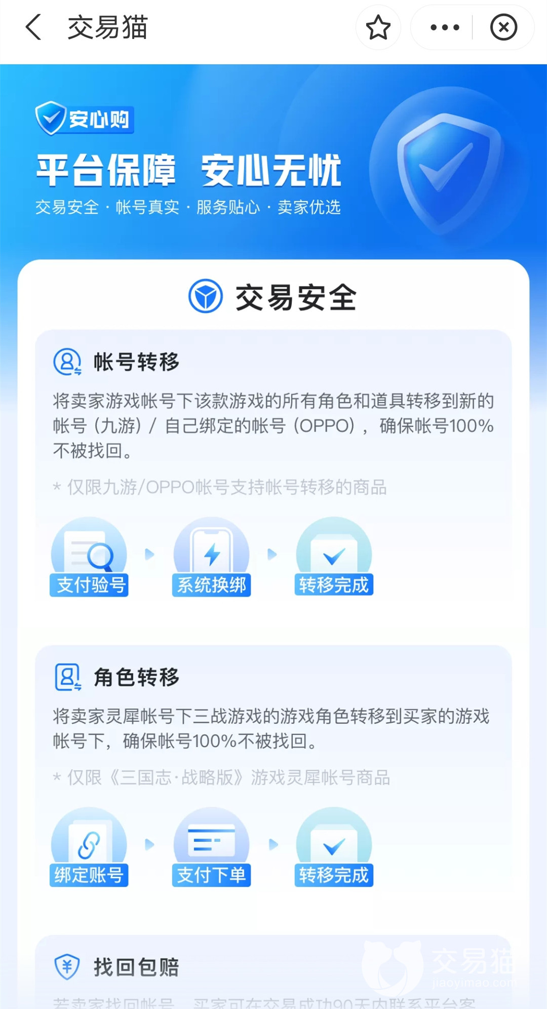 不过作为卖家,也必须遵守交易猫的交易规则,需要完成身份验证和账号验证,这样才能获得交易猫的认可,成为一个优质卖家,如果你卖号之后后悔,想要拿回账号,也可以联系交易猫的工作人员,交易猫会积极和买家进行沟通。
