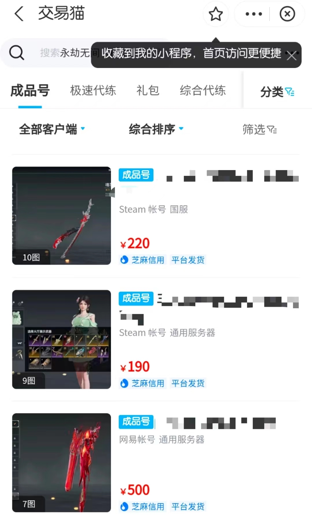 经常玩游戏的小伙伴都知道,很多大制作的游戏端都来自steam平台,在steam平台有很多非常火爆的游戏,就拿永劫无间来说,这款游戏刚上市不久,就收获了众多玩家的好评,喜欢金庸武侠片,拥有武侠梦的小伙伴对这款游戏简直就是爱不释手;因此想要体验游戏的玩家就想购买账号快速上手,小编在这里为大家推荐交易猫平台。