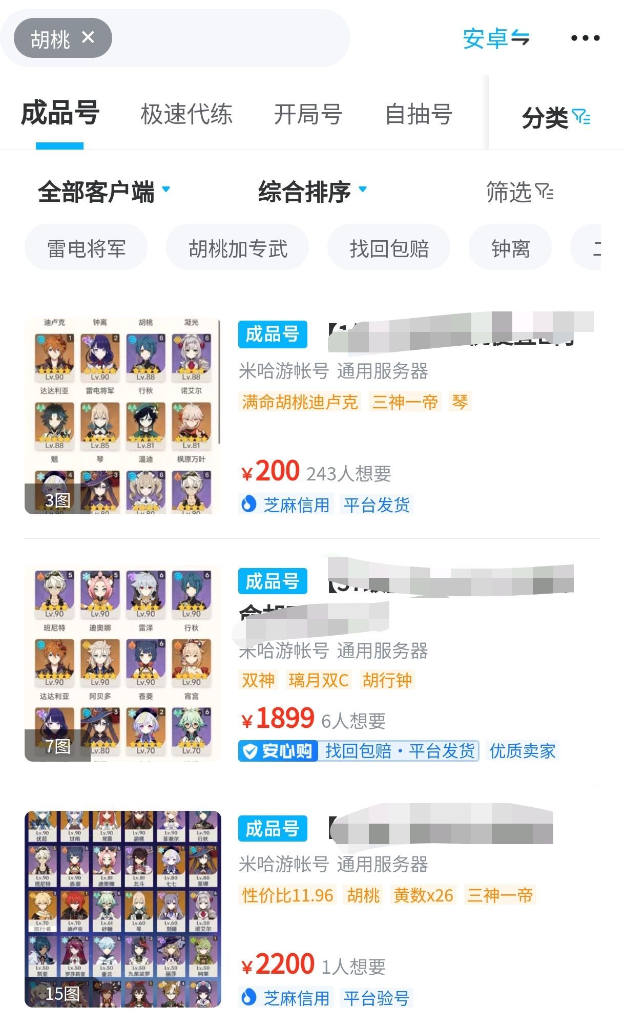 同时如果玩家不想要购买初始号入坑,而是仅想购买一个拥有胡桃的账号,作为小号体验游戏的话,也可以购买其他玩家的自建账号,这样的账号不仅拥有胡桃极大可能性还拥有很多其他角色,方便配队的同时,作为小号来游玩最合适不过了。