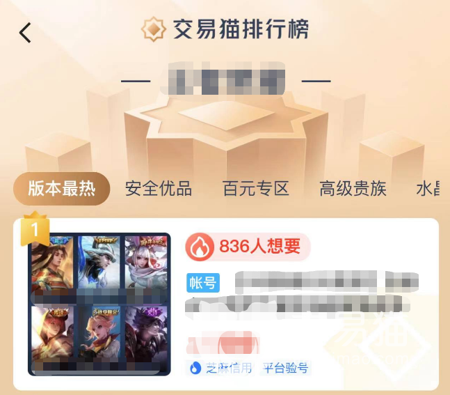 很多喜欢王者的玩家都知道,它的活跃群体非常的广泛,同时人气也是非常大的,今天就和大家说说王者买号30元选择什么平台靠谱,很多时候大家去购买账号,看重的就是售后服务,如果连这个保障都没有,那么整个交易的过程也肯定不会安全,所以推荐大家使用交易猫来帮助自己,这个app里面的功能还是比较多的,并且能让用户有个安心的交易环境,感兴趣的话,就和小编一起来看看吧。