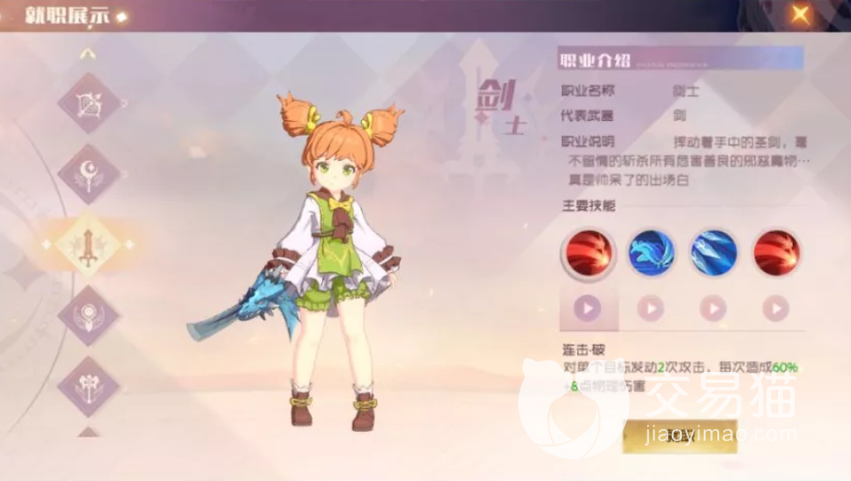 1、剑士:是一个使用近战武器的职业,能够对怪物造成大量的物理伤害,而且还能够使用武器抵挡敌人的攻击,不仅能够对敌人造成大量的伤害,还能够当做前排坦克使用,属于十分全面的英雄。而且速度比较快,往往能够在战斗中去的先手。