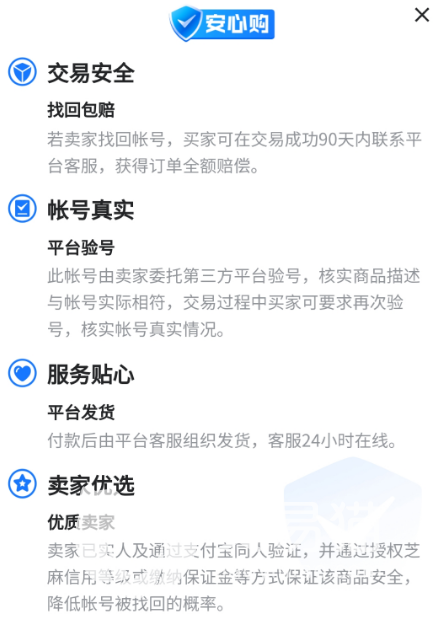 既然卖号想图一个靠谱,那么交易猫的“安心购”服务一定能很让双方安心,虽然表面上是在保障买家的权利,但只要买家交易足够安全,双方的交易就不会因特殊情况结束,本身双方能在网络上达成交易也是凭一份信任,所以有一定的保障会让双方的进展更顺利。