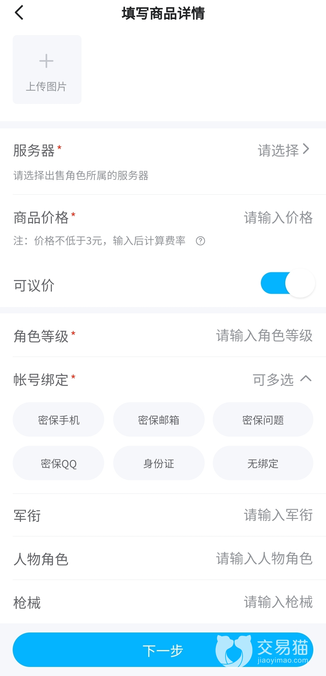 作为卖家身份上架商品,用户只需点击“我要卖”,按照系统提示填写、选择账号详细信息,最后点击发布即可。如果不会定价,可以看看其他人的定价情况,交易猫用户多商品多,会给你足够的参考标准,摸清市场形势后再定价就容易多了。
