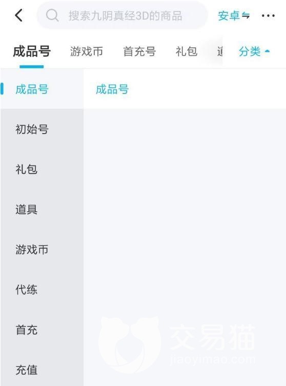 这里有首推的便是交易猫了,这个软件中不论门还是冷门,手游还是端游的游戏基本都可以从中寻找到相应的账号。所以如果各位想要购买九阴真经这款游戏的账号,便可以去玩交易猫中进行搜索。此时只需要通过主界面搜寻相关游戏名便可以进入对应的专区。