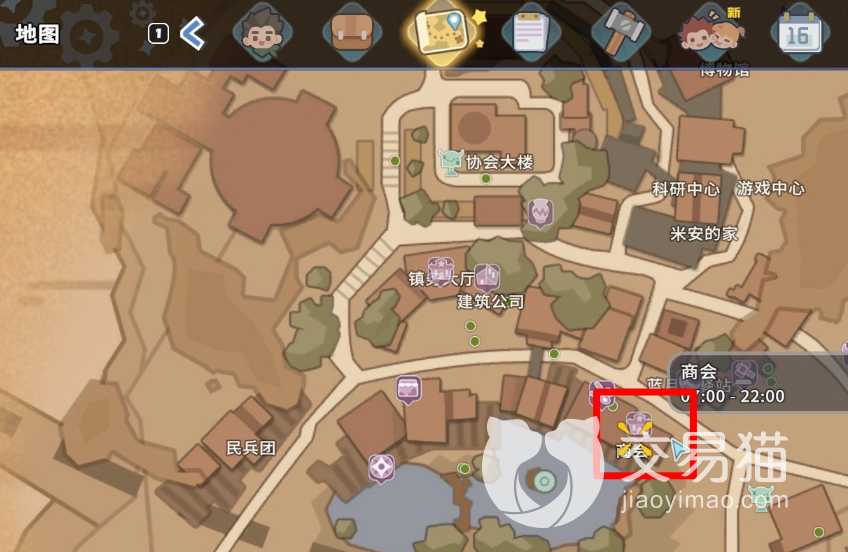 1、这个商店的地点在商会里面,在靠边上的角落里就能看到,而商会的地址是在小镇的入口位置。