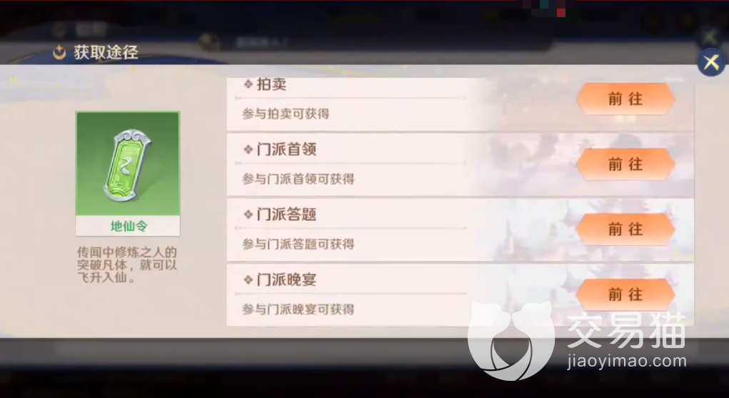 3、主角升星:关于主角的升星则是需要仙阶的晋升,而晋升也是需要材料仙令的。仙令的获取方式多种多样,比如拍卖行、门派答题、商店购买、门派首领,直接点击前往就可以获得。