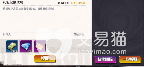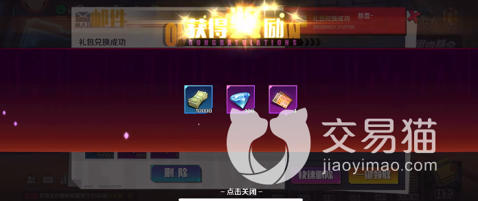 输入完点确定以后,玩家可以等一会,或者重启一下游戏看看有没有新的邮件发来,游戏cdkey兑换的礼包会以邮件的形式发给玩家,直接领取其中的奖励附件就行,非常简单。
