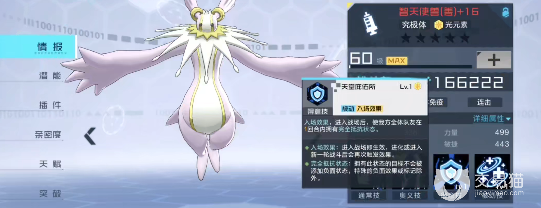 普攻有几率施加天罚印记,敌人受到光属性伤害即可被移除增益,奥义技则是造成七段伤害,并同样有概率施加印记。大招则是个被动,能在上场时,让全体队友免控一回合,被动更是有几率对敌人造成百分比生命值的伤害。