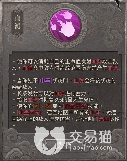 三尸慈姑娘娘是毒剑,需要在特定关卡来解锁后才可以使用,以毒和血来叠加层数打伤害,所以很适合那些叠buff然后看敌人自己掉血而死的玩家。两个下属流派一个偏重血和毒混合,带有吸血机制,另一个完全靠毒爆和真伤来输出,很出名的血毒流指的就是前者,因为自己也会中毒,这个流派玩起来既紧张又刺激。