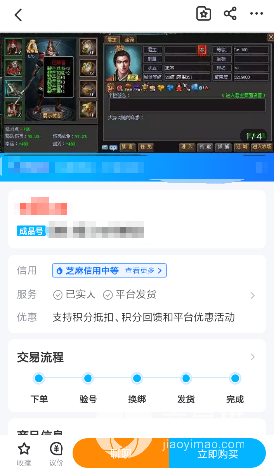 1、毕竟和高级玩家之间的差距是非常明显的,而交易猫刚好为大家提供了一个拉平差距的机会,玩家只需要在七雄争霸专区当中挑选自己满意的游戏账号即可。每一个账号详情页当中,都可以通过截图和商品描述的方式让大家快速判断这个游戏号是否符合自己的要求。