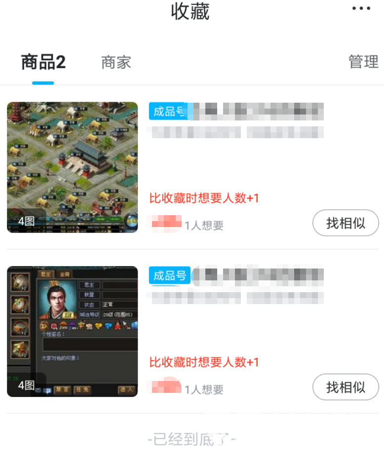 2、同时,各位在浏览商品的过程当中,也可以将感兴趣的商品进行收藏,随后大家就可以更直观的通过对比来了解每一个商品之间的不同。如果非常喜欢同一类型的游戏号,大家也可以点击找相似去挖掘更多符合条件的游戏账号。