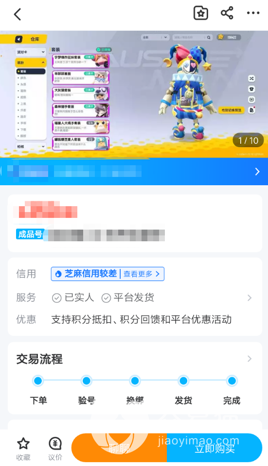 1、各位在交易猫app内浏览香肠派对的游戏账号时,可以通过截图的内容展示去了解当前游戏号所包含的内容,玩家可以直观的了解到其中拥有了哪些高级皮肤和各种稀有的材料,这些信息也是帮助大家判断该游戏号是否值得购买的核心因素。