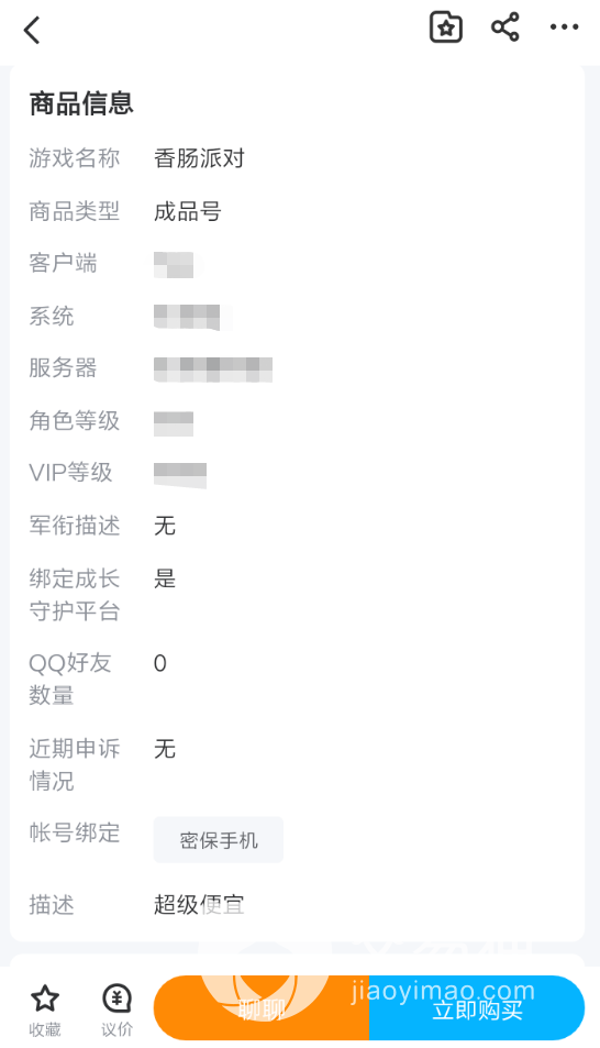 2、当然,更详细的商品信息内容,也需要玩家们认真的去进行查看。这样各位才会知道该游戏号目前所支持的操作系统以及所在的服务器,甚至是主要角色的等级玩家也可以从具体信息当中得到了解。