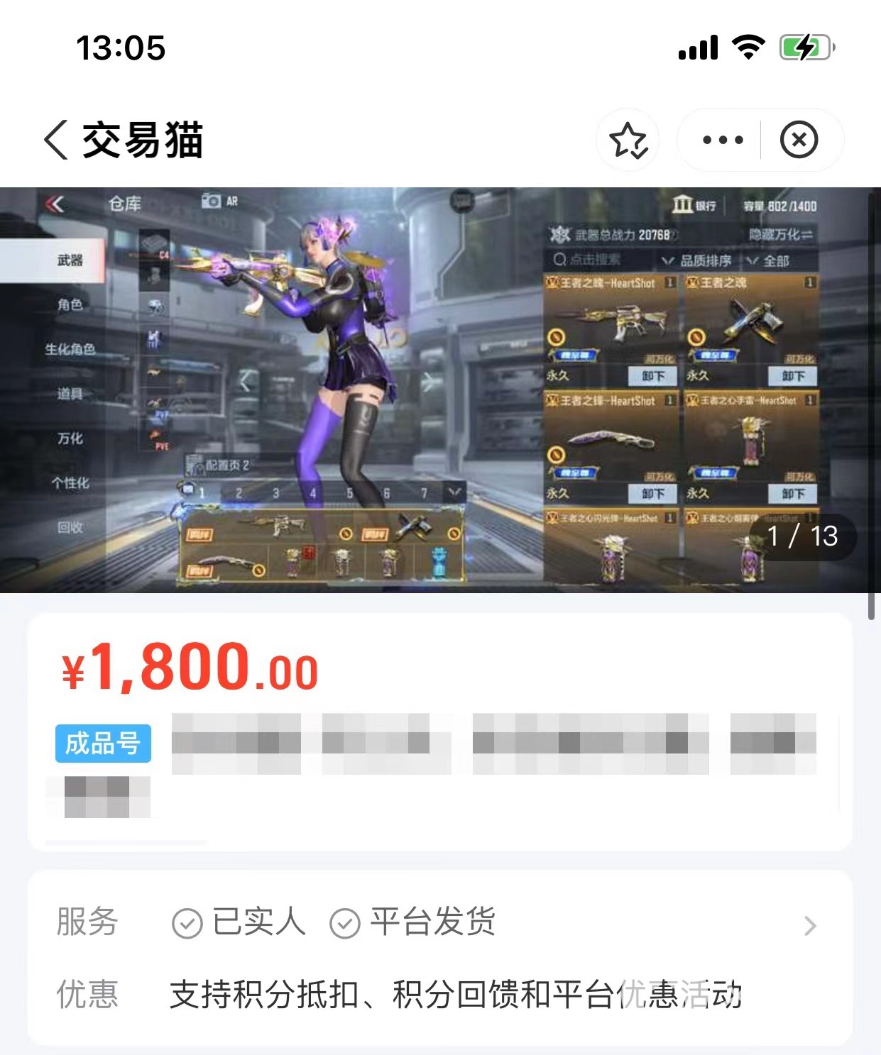 在cfm中不仅延续了端游中的经典游戏风格,而且加入了很多创新玩法,让玩家们不再受设备的限制,随时随地能够开黑娱乐。想要快速入手游戏的玩家,就可以选择在交易猫中搜索游戏名称,选择自己心仪的账号进行咨询购买。交易猫还有着几大优点: