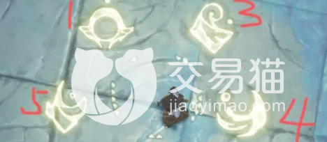 切换到昼夜之后,进入到光幕中间的空地上,进入之后,玩家会发现正中心有五个图案,每个图案都有三角形,不过三角形的数量是有所却别的,有多有少,最少的一个,最多的五个,不带重复的,这个就是玩家需要接触的光幕的顺序了。