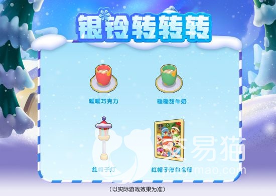 此时需要做的是,将其掉落的部件拾起,并将这个雪人重新堆好就可以获取到相应的奖励了,这里的奖励便是上面可以用来兑换物品的雪花道具。另外各位将庄园的雪人戴上许愿帽,第二天就能够收获一个礼盒。同时新的转盘也会出场,各位完成任务便可以获取到相应的道具。