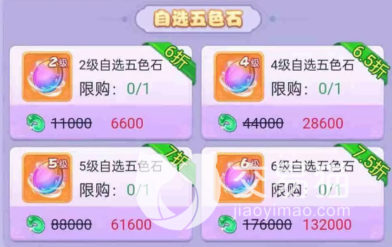 然后就是今日限购了,这里的五色石通常会打折进行出售,会相对比较便宜一些,当然这里的五色石等级是不固定的,需要玩家看脸能不能刷出来高等级的。