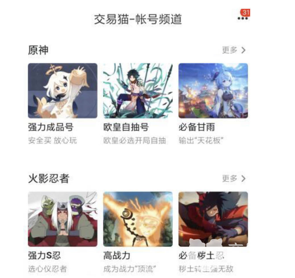 交易猫作为老品牌用户群体中多,支持各种热门以及冷门的游戏进行商品交易。玩家在进入交易猫主界面之后,再搜索相关游戏进入到交易专区。可以简单方便的在专区里找到各种自己所满意的产品类型。并且交易猫还支持筛选功能,玩家用该功能可以更加针对性的找到自己想要的商品。