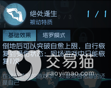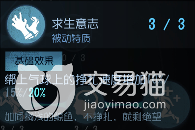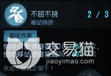 这个天赋可以算是全游戏最重要的逃生者天赋,没有之一!因为它的效果是让你在倒地后也能回血,而只要回到受伤状态的血量,那么就可以无需队友帮忙自行爬起,虽然单局也只能触发一次,但也足够有用了。
