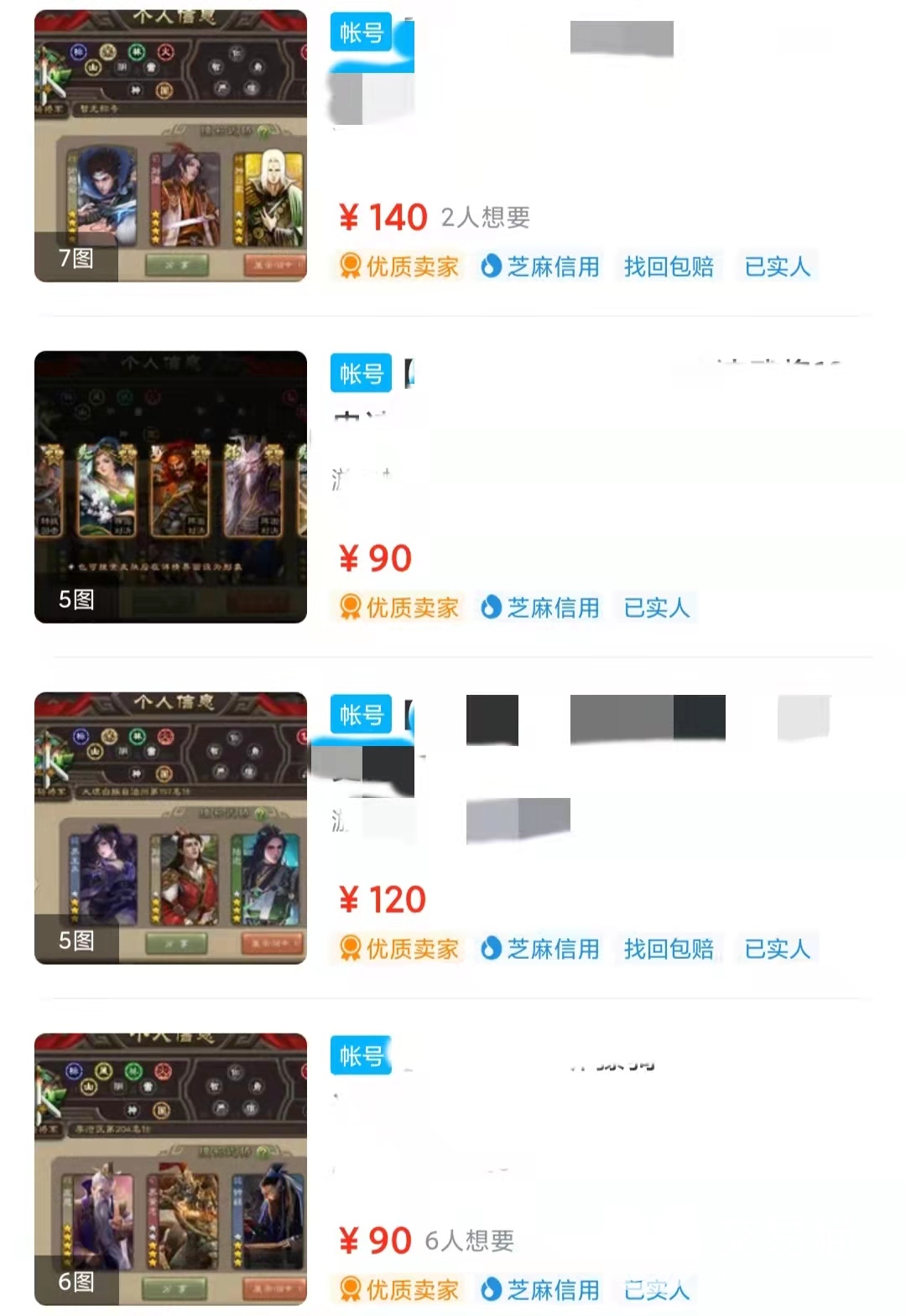 从首页就能看到,基本上每个账号的下方都会有着“优质卖家”的标签,这个标签可不是一种摆设,他代表了卖家对交易的熟悉程度和账号卖出去的成功率,一般有这种标签的卖家都会比较熟悉流程,其手中的账号也都相对更加优质。另外大家可以看见这些账号的价格都是不贵的,只要一百块上下,里面的武将卡牌却一点都不少。
