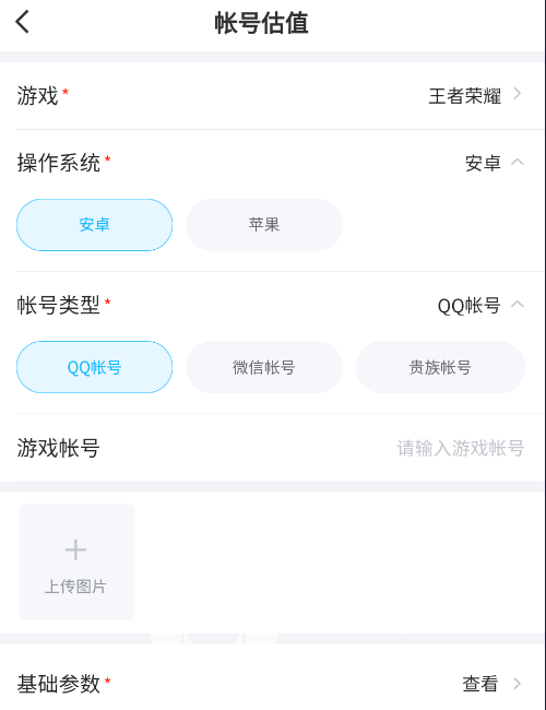 交易猫估值的方法也非常简单直接找到交易猫免费估值服务,找到王者荣耀,进入到王者荣耀的专属估值界面,之后将自己的账号基础信息以及装备皮肤还有角色全部填写完毕,点击一键估值,等待一小会之后估值信息就出来了,这里都是专业的客服为大家服务,估号结果保真。