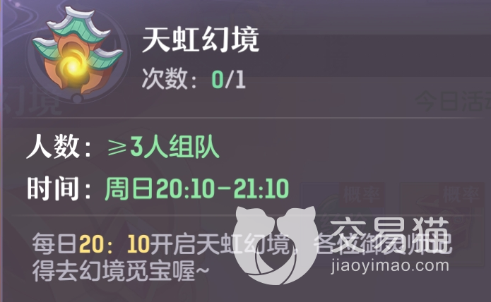 1、每周六日20: 10至21: 10开启天虹幻境。