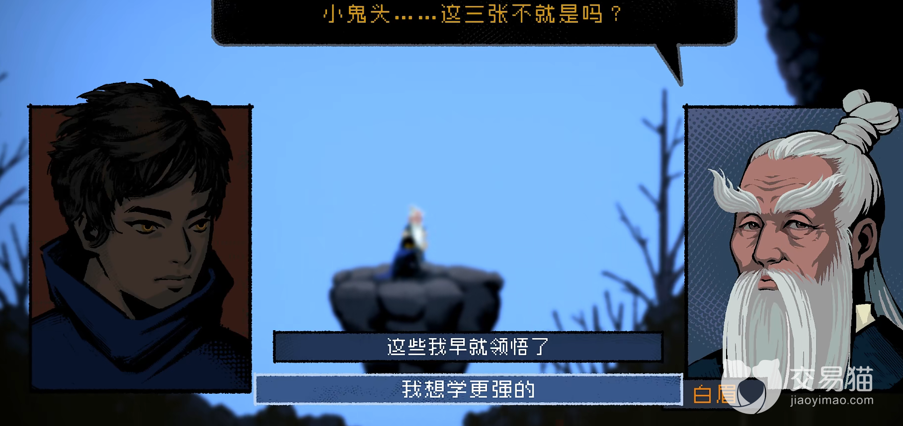 玩家在获得三个残页之后就可以返回安托尼山的最高处找到白眉,在与对方对话之后就可以自行参悟这本秘笈。