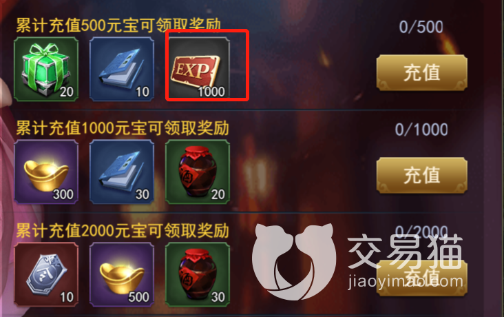 这个游戏的累充是有着大量奖励的,而经验就属于其中一种,可以看到最低一档的五百充值,就有足足一千经验的奖励,要知道前期一级的经验条也才几百,这些经验足够连升三四级了,另外,首充的时候也会额外赠送八百经验,和这个叠加在一起,升级效益会十分明显。