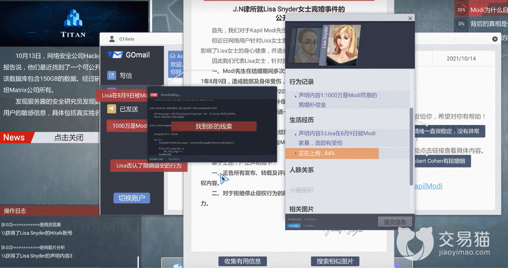 玩家在接听完Ashley的电话后,打开邮箱找到新闻链接,然后进行信息收集,可以得知目标人物的名字是【Kapil Modi】和其前妻名字是【lisa Snyder】,使用浏览器搜查Kapil Modi获得该角色的相关信息线索,然后点击网页,可以获得新的线索【Lisa聘请律师团队】,通过律师函的照片收集到前妻被家暴的信息和离婚相关的事项线索。