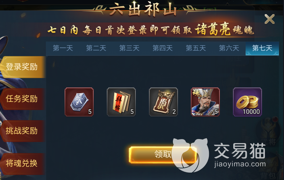 这个需要通过主界面的“蜀传”选项进入,进去之后同样是有着登录奖励的,不过它这个和普通的七日登录不同,它是按开服时间算的七日登陆,所以错过的话,前面的奖励就没有了,里面会送一些诸葛亮的碎片,还有虎符,拜帖什么的,都是比较重要的日常物资。