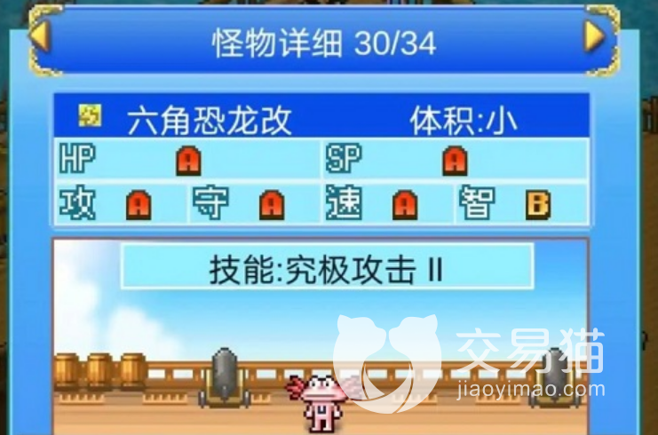 为什么会推荐六角恐龙这个宠物呢?首先这个宠物也是一个S级宠物,它可以吃掉两个十级的宠物,被吃掉的这个宠物也是游戏中大家都知道的觉醒材料,因为吃掉这两个材料以后,这个宠物才会觉醒。觉醒了以后它的性能数值会上升,一般来说这个六角恐龙50级左右,它的最强技能就会出现,而且六角也是其中拥有连击技能的一个宠物。它在50级的时候攻击和速度防守都是属于A等级的,在前期可以说压制的非常的厉害。