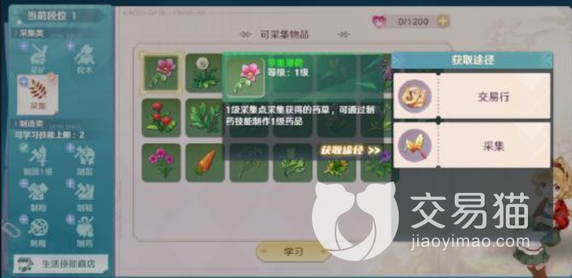 在这款游戏中,生活技能统一被分别称呼为采集、制造、烹饪等等一系列的玩法。先说采集,采集基本上分为三大类,采草、采矿以及伐木这三个种类。由于玩家在游戏中学习这些技能的有限,可以说采集是升级最难的几个职业。因为大家在进行采集的时候,虽然不需要进行多好的操作,但是需要大量的时间进行挂机。但是相比较于其他的职业来说,这个职业大家赚钱会更加的方便。