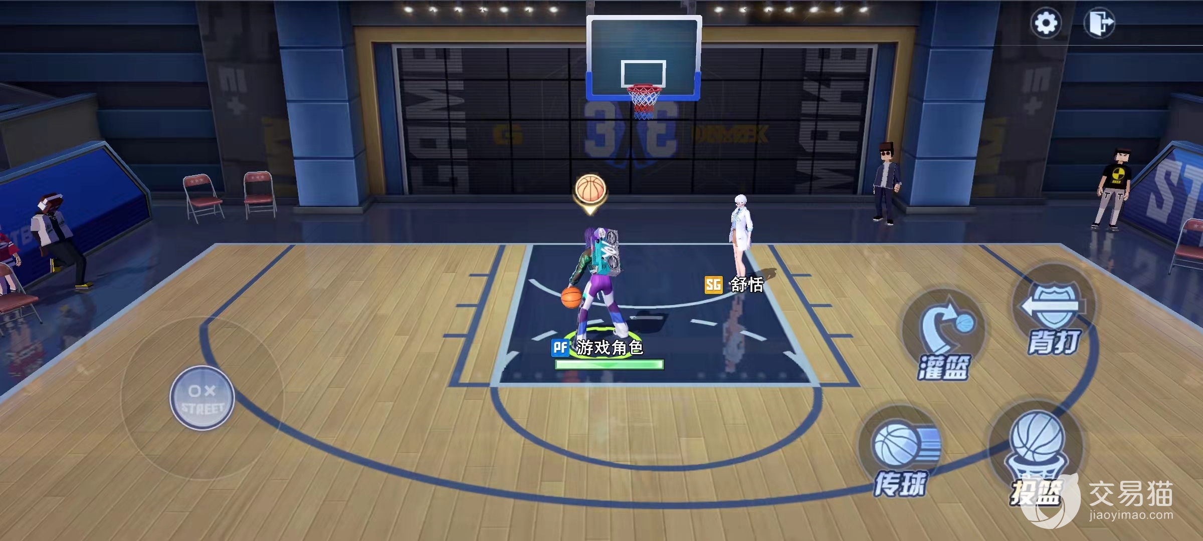 另外没有“自由灌篮”技能的朋友也不用灰心,只需要让角色保持向篮筐冲刺的状态,然后大概距离两个身位的距离把方向键拨向篮筐,同时按下投篮键,也是有概率出现扣篮动作的,不过这个需要身前没有防守人才有更大概率触发。