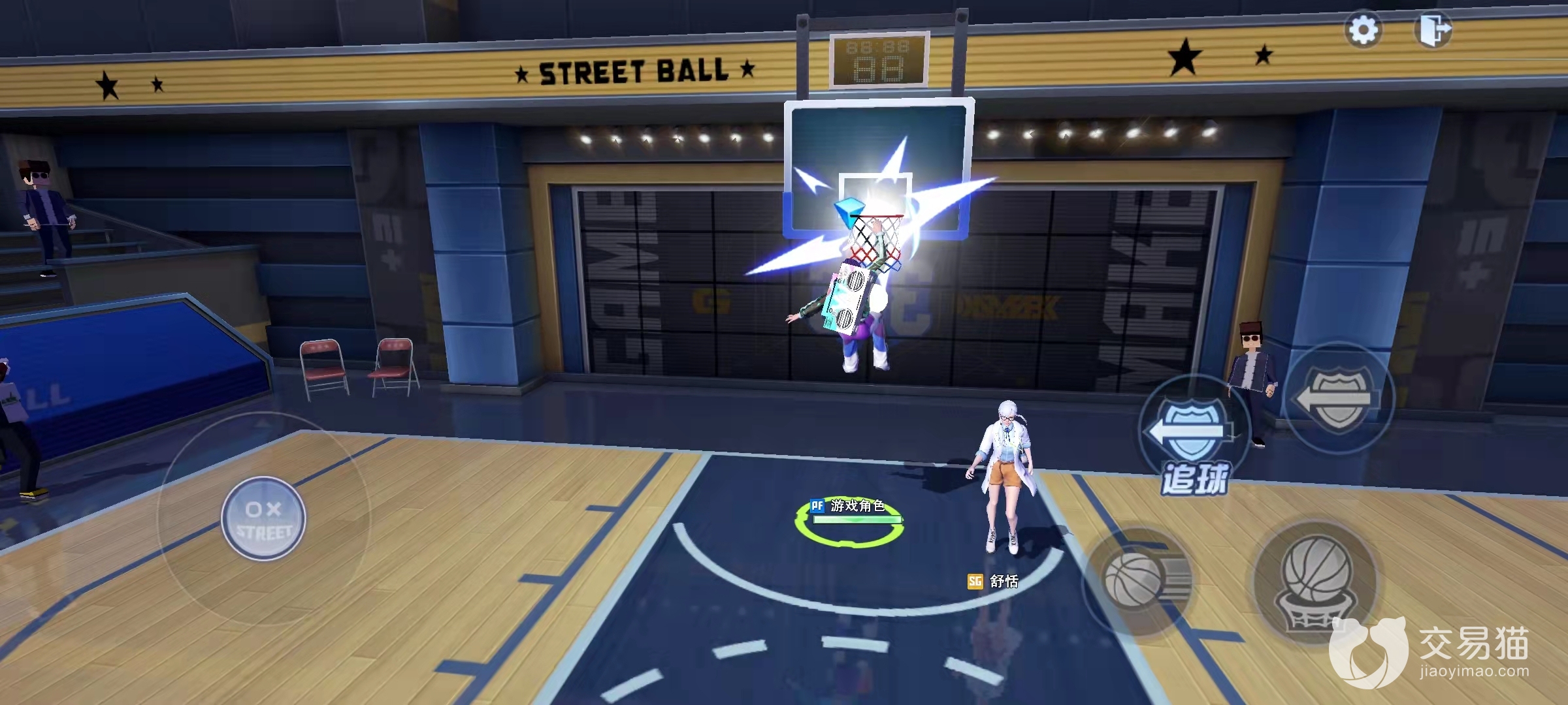 具体操作方法的话,就是往篮筐方向运球推进,然后等到右下角的“灌篮”键亮起时点一下即可,根据球员所在位置的不同,出现扣篮动作也会不一样,大多数时候的扣篮动作都会平平无奇,不过如果你使用的是特殊的角色,那么他可能会携带更华丽的扣篮包。